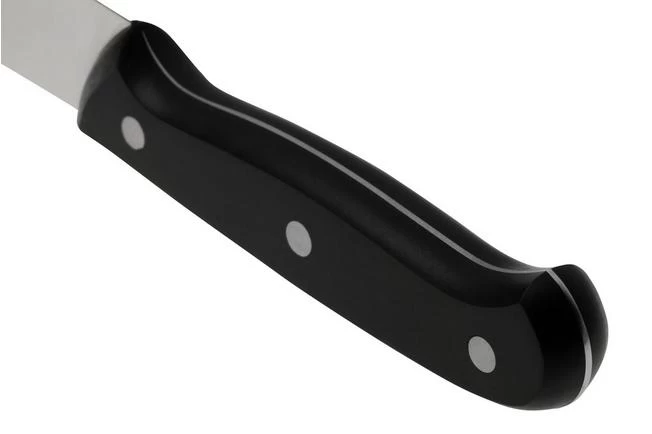 The Eden Essentials carving knife has a long, narrow blade. Perfect when cutting all sorts of meats. Because of the narrow blade the meat will not stick to the surface of your blade. In addition, the length will enable you to make long, straight cuts. When cutting use the entire surface of the blade and cut products in one go.