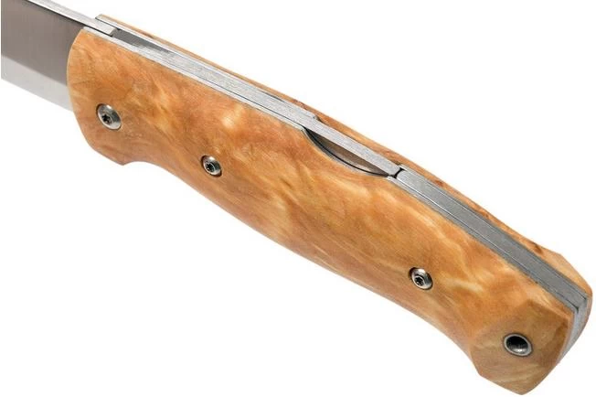 The Helle Bleja 625 is an all-round outdoor pocket knife. The curly birch handle feels great in hand. The handle was shaped, polished and oiled by hand to give it it’s unique character.