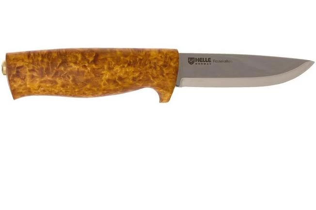 The Helle Fossekallen is an all-round outdoor knife. The name is derived from Norway’s national bird, the Fossekall, known to us as the dipper. The knife feels great in hand and offers enough grip during long-term use. The handle is made from stunning birch wood. The handle was shaped, polished and oiled by hand to give it it’s unique character. The blade is made from a core of hard stainless steel, laminated in between two layers of 18/8 stainless steel. This core has a razor-sharp edge and is easy to sharpen.