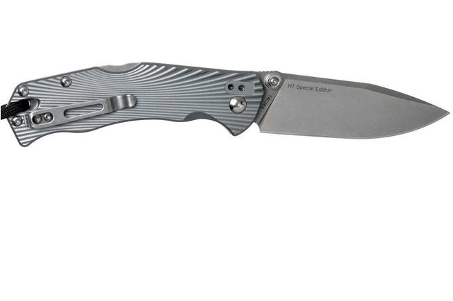 The Real Steel H7 Special Edition Grey 7794 is a cool black pocket knife, for an amazing price. You can easily open it with one hand with the double thumb stud and the solid backlock locks it to make sure your fingers are safe. A practical pocket knife for daily use. Whether you open a lot of boxes, or peel an apple on a daily basis: the H7 will never let you down.