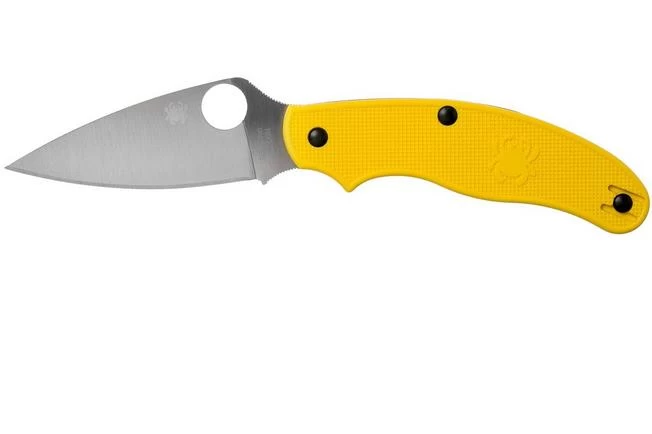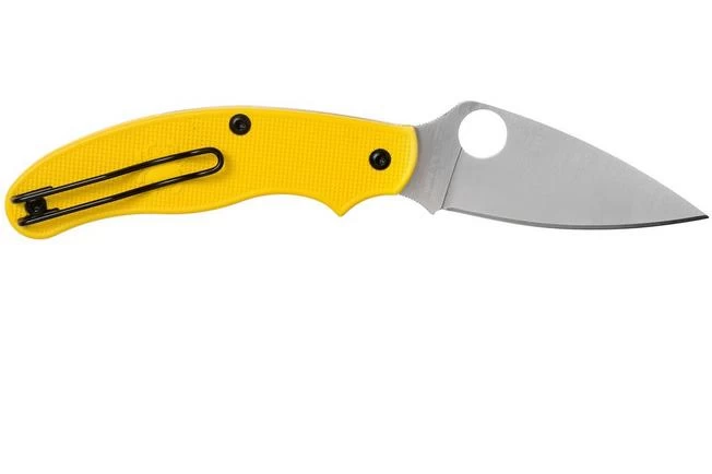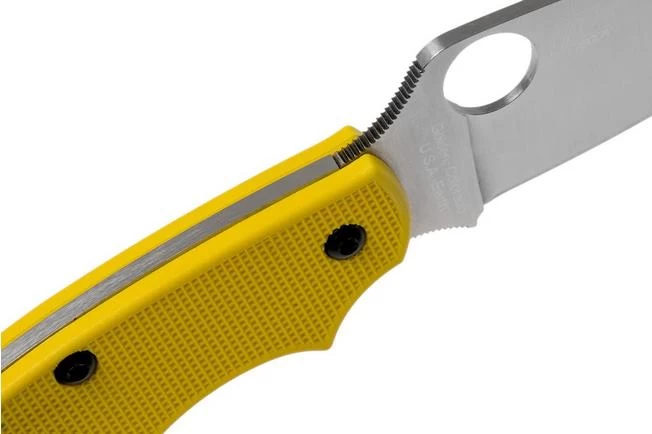 The Spyderco UK Pen Knife C94PYL is a lightweight pocket knife, designed for the British market and the legislation that applies there. This means that it cannot contain a lock and cannot be too big. Within these limits Spyderco was able to create a stunning knife. The lack of a lock is compensated by the clear click when the knife opens. Halfway through closing the knife you once again hear a clear click. The index finger falls into the curve of the blade and handle. If the blade accidentally closes it is stopped by your finger which decreases the chances of accidents.