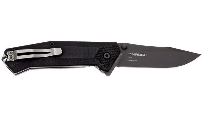 The Steel Will Onrush 612 drop-point is a solid and tough pocket knife with a N690Co-steel blade. The 3.5 mm width makes it very solid for its size. The reliable PVD coating on the blade helps against reflection, which is something we see more and more on tactical knives. The Steel Will Onrush is easy to open single-handedly for left and right-handed users because of the flipper and the dual thumb studs. Also the pocket clip can be placed on both sides. The G10 handle features a grip pattern made by a 3D machine that along with the hefty size gives a very solid grip.
