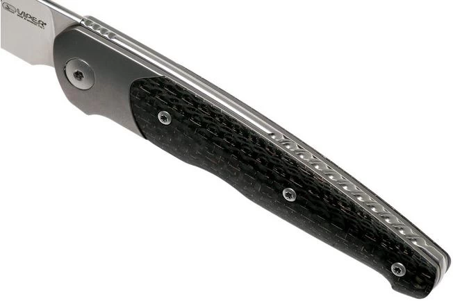 The Viper Key V5978FCB Bolster Bronze Carbon fibre pocket knife is a stylish gentleman’s knife, designed by Jesper Voxnaes. His typical and unique design style is clearly reflected in this remarkable gentleman’s knife. There is almost no straight line in sight. All shapes, lines and details match and form a harmonious whole. The slim design is very appealing and turns it into a perfect gentleman’s knife for anyone who loves wearing a fancy outfit.