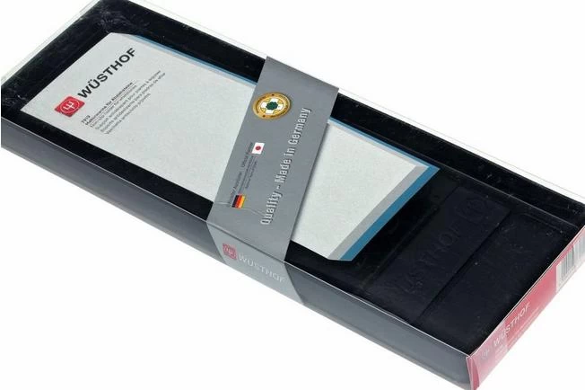 Rubber whetstone holder for all Wüsthof stones or other sharpening stones.It keeps the stones in place which is very important during sharpening. The holder also acts as a drip tray for the water. Suitable for sharpening stones up to approx: 9×30 cm with a minimum width of 2 cm (the stone should always top the edge of the holder)
