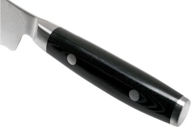 The Yaxell Ran panini knife is a Japanese bread knife with a stunning design. The remarkably-shaped blade is great when preparing sandwiches. With the serrations you can easily cut through the hard crust and with the high blade and the convex tip you can easily spread out jam or butter.